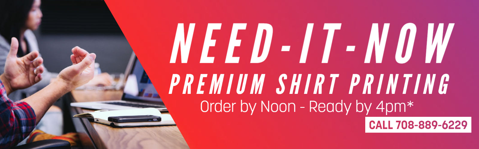 We have a large quantity of pre-printed shirts in a variety of colors, sizes, and themes available in our Lansing Store or Online. Same-Day Shipping is available for that last minute gift. We have shirts for Sports Teams, Clubs, Bands, Military, First Responders and much much more. Stop in, call us at 708-889-6229 or shop our Closeout Section online.