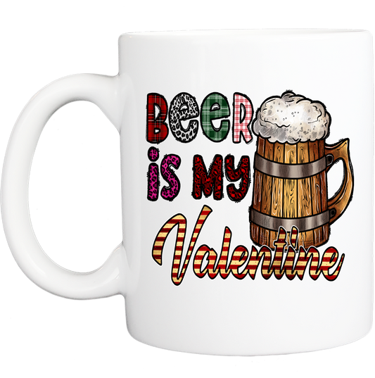 Personalized Valentine Coffee Mug: "Beer Is My Valentine V85" - 11 or 15 Oz with Box - White - FREE SHIPPING
