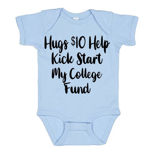 Infant Onesie: HUGS $10 HELP ME KICK START MY COLLEGE FUND (S21)- FREE SHIPPINGVendor:Worldwide ShirtsRegular price $17.99Regular priceUnit price / per-