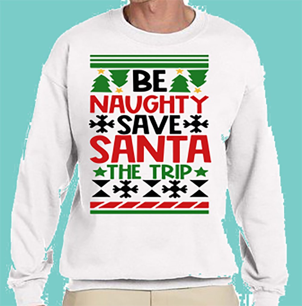CREW SWEATSHIRT T-Shirt: "Be Naughty save Santa the Trip" - FREE SHIPPING