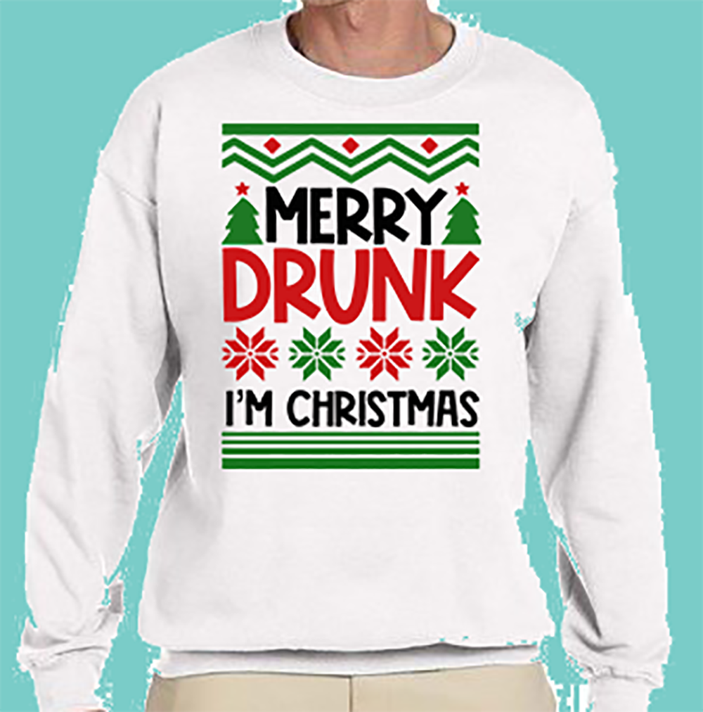 CREW SWEATSHIRT T-Shirt: "Merry Drunk I'm Christmas" - FREE SHIPPING