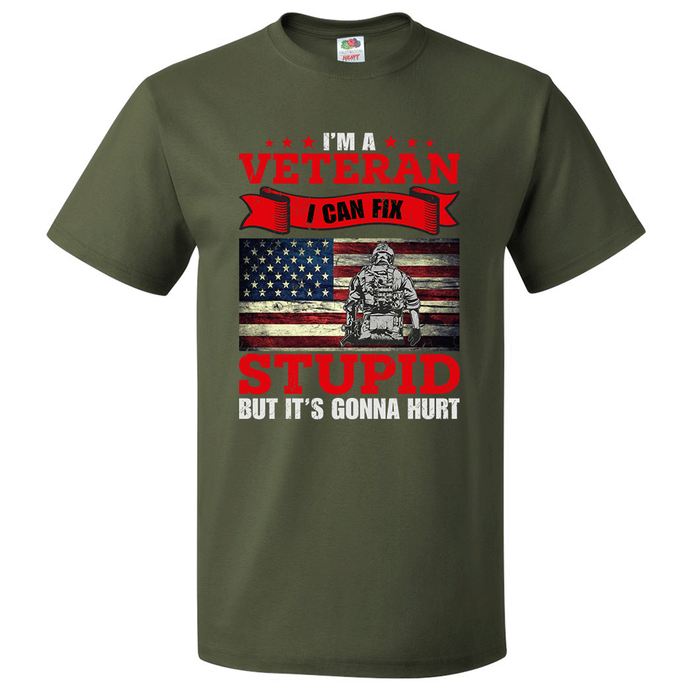 Short Sleeve T-Shirt: "I'm a Veteran, I Can Fix Stupid But it's Gonna Hurt" (P24) - FREE SHIPPING