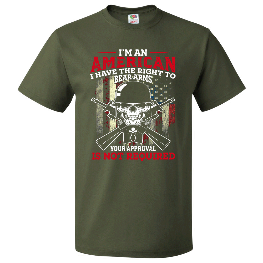 Short Sleeve T-Shirt: "I'm an American, I have the Right to Bear Arms" (P27) - FREE SHIPPING