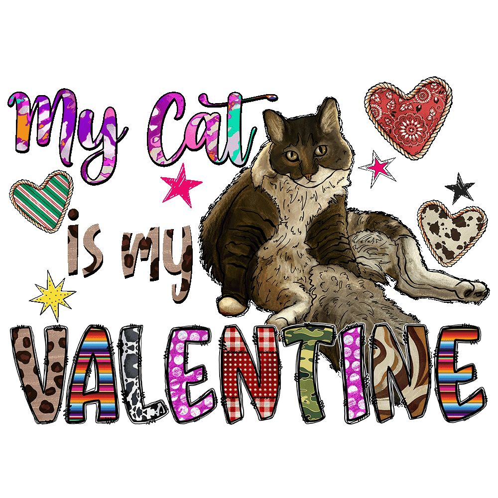 Short Sleeve T-Shirt: Valentines Day - "My Cat Is My Valentine" (V32) - FREE SHIPPING